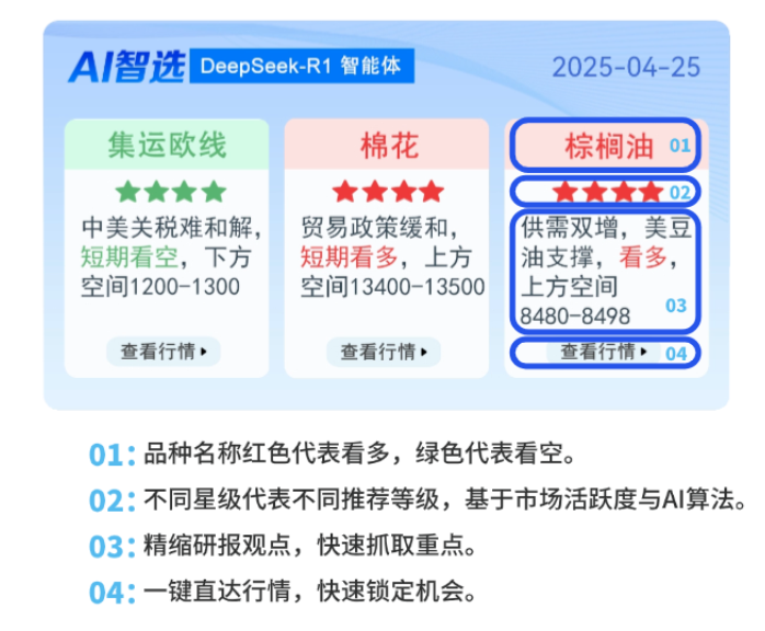 “AI智選”在每日盤前,閱讀大量的研報(bào)內(nèi)容,經(jīng)過(guò)大模型的綜合評(píng)價(jià),從中挑選出三個(gè)觀點(diǎn)鮮明、論據(jù)充分且具備中長(zhǎng)期參考價(jià)值的品種,幫助客戶捕捉市場(chǎng)機(jī)會(huì)。該產(chǎn)品有以下核心特點(diǎn):