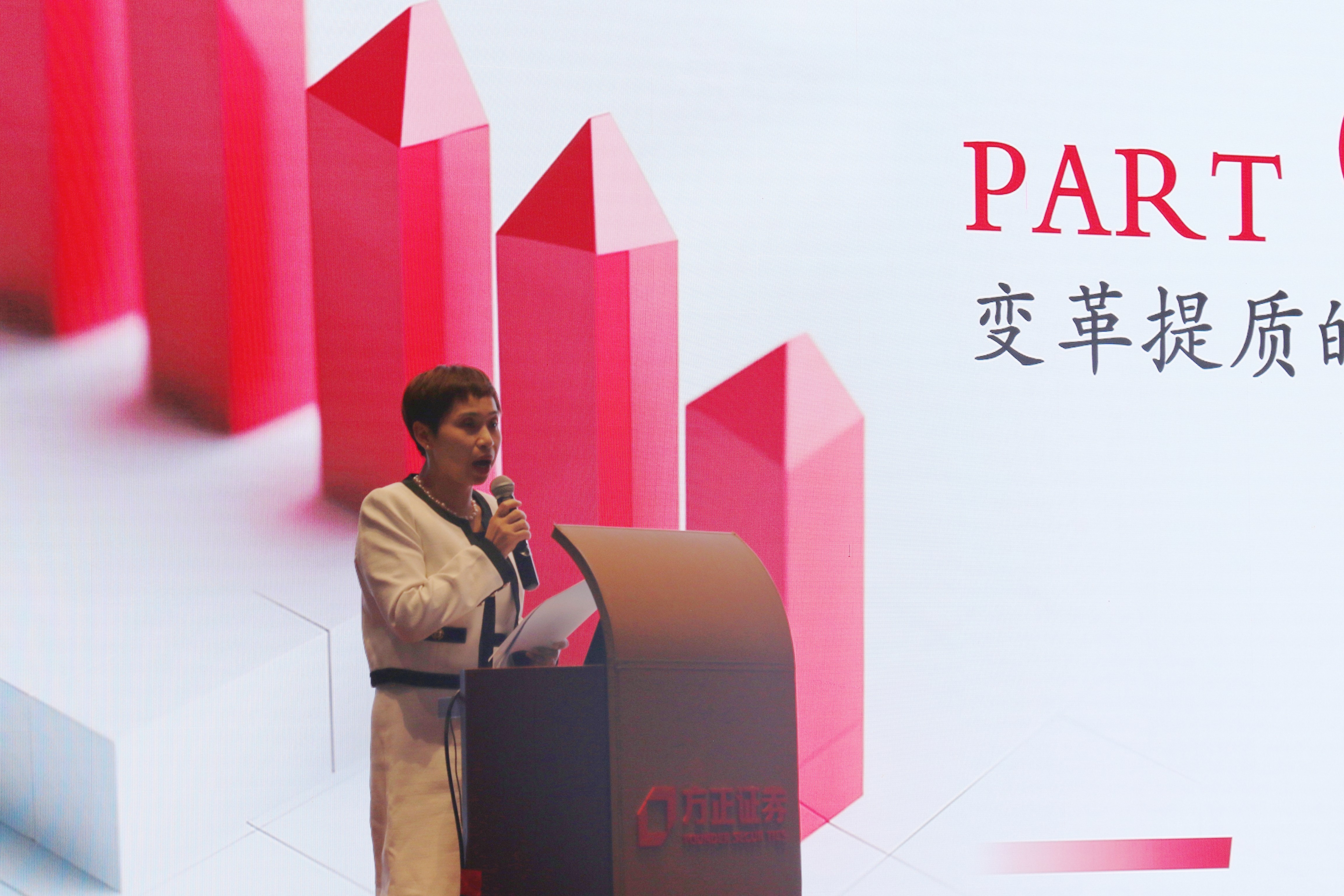 隨后,總裁肖湘上臺,為在座員工及遠(yuǎn)程連線的外阜員工開啟了一場她起心動(dòng)念已久的談心會。肖湘結(jié)合公司現(xiàn)階段發(fā)展及行業(yè)嚴(yán)監(jiān)管的現(xiàn)狀,將近一段時(shí)間內(nèi)對于為什么要變革提質(zhì)、變革提質(zhì)與每個(gè)人的關(guān)系以及公司未來需要怎樣的人才這三個(gè)問題的思考,濃縮到“變革提質(zhì)——以客戶為中心 以生存為底線”的主題演講之中,向員工傳遞了公司貫徹變革提質(zhì)戰(zhàn)略的決心。