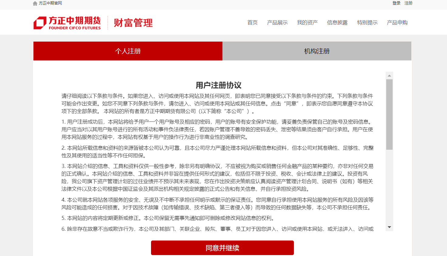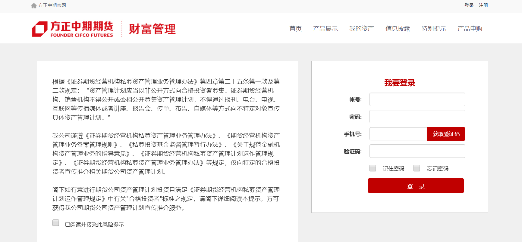 2、如未購(gòu)買方正中期期貨有限公司產(chǎn)品的客戶可通過(guò)注冊(cè)賬號(hào)之后登錄網(wǎng)站