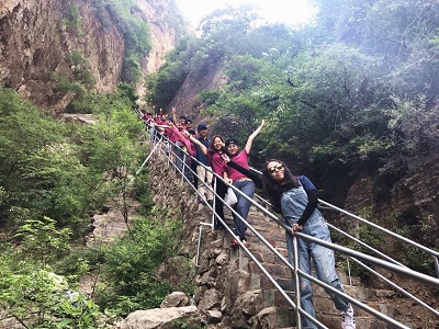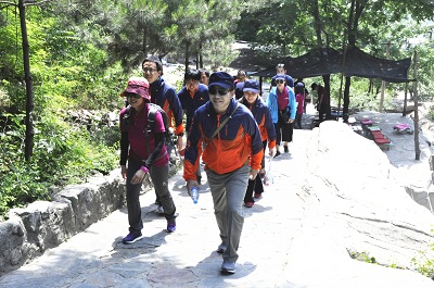 ??? 19日中午,在狼牙山,參訓(xùn)黨員及入黨積極分子在炎炎烈日下,沿著英雄的足跡向狼牙山頂峰進(jìn)發(fā),險(xiǎn)峻陡峭的山路讓大家切身體會到當(dāng)年狼牙山五勇士舍生忘死,抗擊日寇的英雄氣概,一路上盡管早已汗流浹背、體力不支,但大家相互鼓勵、相互支持,經(jīng)過近2個(gè)半小時(shí)的努力,大部分黨員順利登頂,并在莊嚴(yán)肅穆的五勇士紀(jì)念塔前駐足、致敬,緬懷五位戰(zhàn)士熱愛人民,舍身取義的大無畏精神。