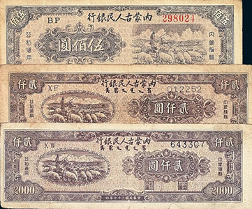由于解放戰(zhàn)爭形勢需要,1947年5月,內(nèi)蒙古自治區(qū)人民政府將東蒙銀行改組為內(nèi)蒙古銀行,內(nèi)蒙古銀行成立期間,共發(fā)行“內(nèi)蒙古各旗縣公私款通用地方流通券”面值為200元、500元、2000元、5萬元四種,流通于內(nèi)蒙古解放區(qū)。1948年6月又改為內(nèi)蒙古人民銀行。1951年4月,內(nèi)蒙古人民銀行改組為中國人民銀行內(nèi)蒙古自治區(qū)分行。