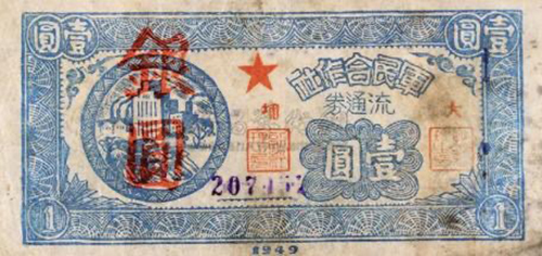 在抗戰(zhàn)勝利結(jié)束時(shí),山東解放區(qū)已有極大發(fā)展,有12.5萬平方公里的面積,占山東總面積的92%,擁有2400萬人口,占山東總?cè)丝诘?0%。1948年10月,山東的北海銀行幣與華北的冀南銀行幣、晉察冀邊區(qū)幣固定比價(jià)互相流通,1948年11月16日起,北海銀行幣與華中銀行幣等價(jià)流通。這一時(shí)期的北海銀行幣均不加蓋地名,便于山東以外的地區(qū)流通。1948年12月1日,華北銀行、北海銀行、西北農(nóng)民銀行合并,在石家莊成立中國人民銀行,但因工作的需要,北海銀行繼續(xù)營業(yè),1949年1月底開始回收北海銀行幣,同年11月1日改稱中國人民銀行山東分行,至此,北海銀行完成了它的歷史使命宣告結(jié)束。